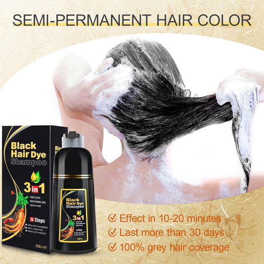 Shampoo Tinte Negro x3 – Cubre Canas al Instante con Henna y Argán 🖤✨