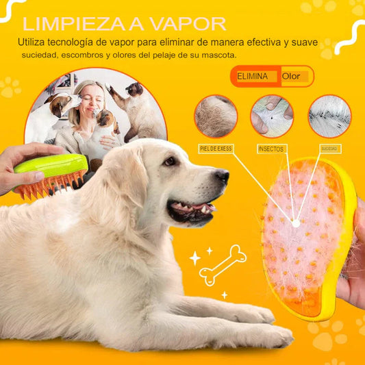 Cepillo a Vapor para Perros y Gatos – Desenreda, Masajea y Cuida el Pelaje